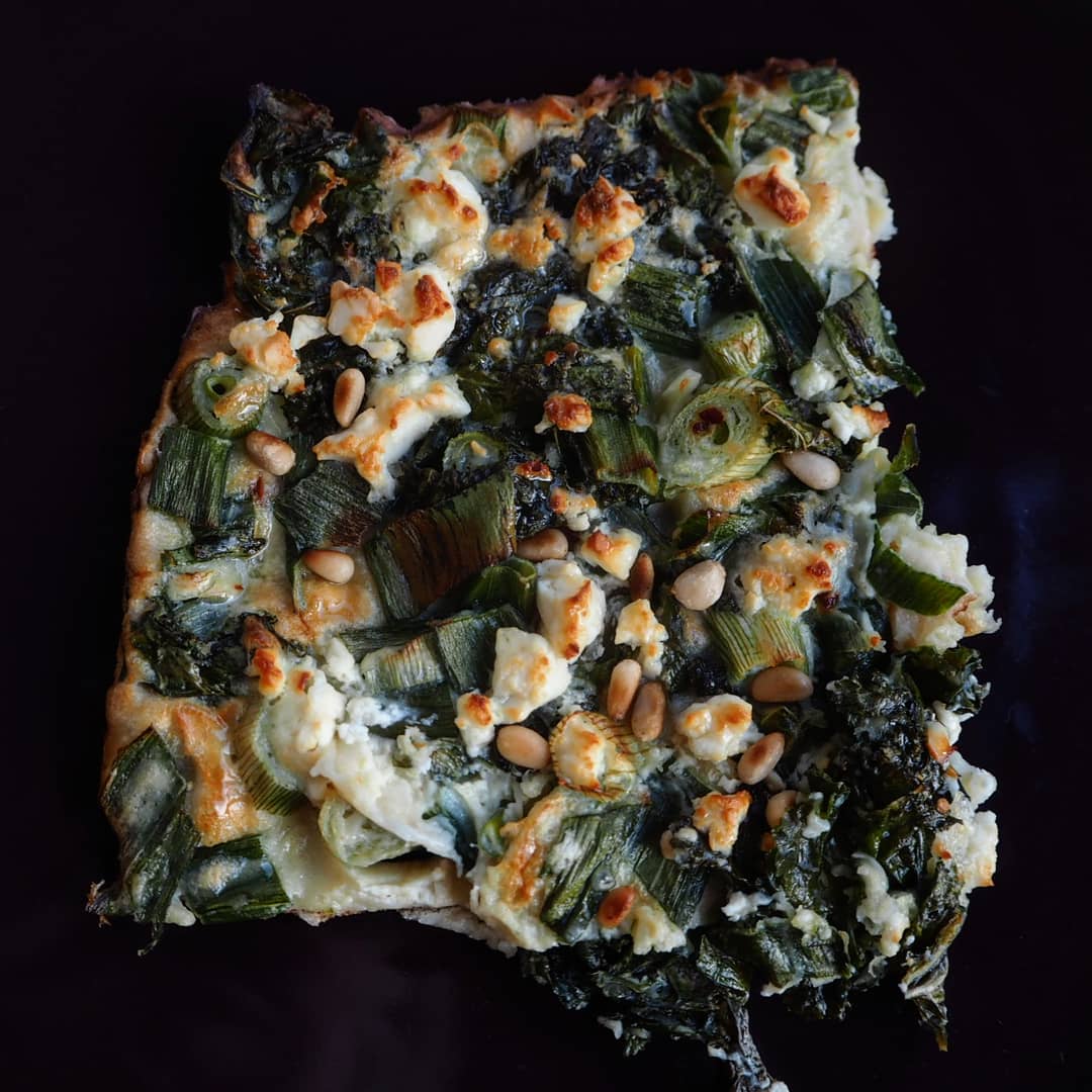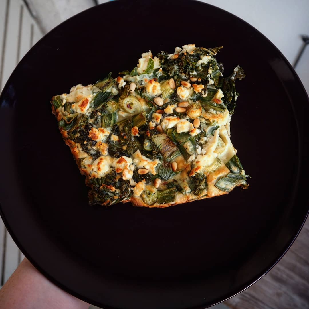 Vuoraa syvä pelti leivinpaperilla ja kaada taikinaseos. Murustele päälle feta. Paista uunissa 20-25 minuuttia. Ennen kuin otat pannukakun uunista, paahda kuivalla pannulla kourallinen pinjansiemeniä. Ripottele siemenet uunituoreen pannukakun päälle ja valuta hieman hunajaa kruunaamaan pannukakku.