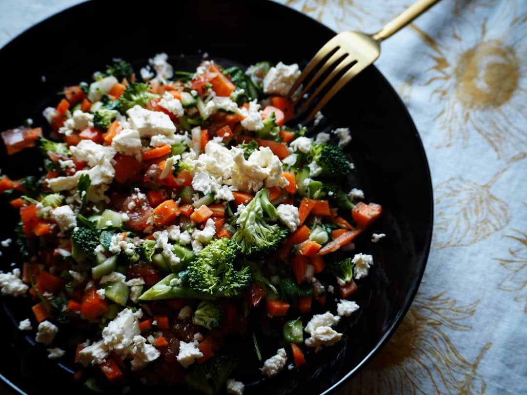 Salaatin ideana on pilkkoa kaikki ainesosat mahdollisimman pieniksi paloiksi. En henkilökohtaisesti pidä salaateissa ”isoista” suupaloista muutenkaan. Tässä salaatissa on raikkautta ja myös voimakkaita makuja. Salaatti on itsessään jo erinomaista, mutta päälle sopii esimerkiksi murusteltu feta tai lohi. Meillä syödään tätä suht harvoin, sillä olen ollut aina laiska pilkkomaan suuria määriä vihanneksia. Terävä ja hyvä veitsi on myös plussaa tätä valmistaessa, ruoanlaitto muuttuu heti puolet mukavammaksi kun keittiöstä löytyy kunnon veitset ja välineet.
