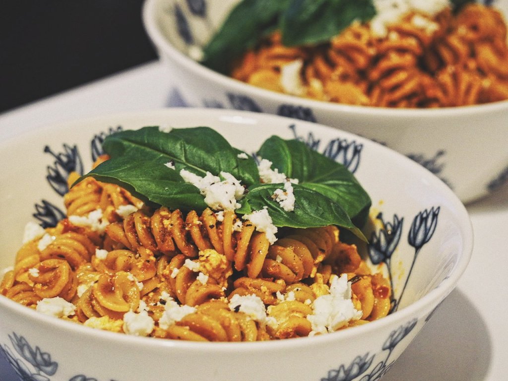 Arrabiata pesto antaa ihanan potkun pastaan ja sopii fetan kanssa täydellisesti yhteen.