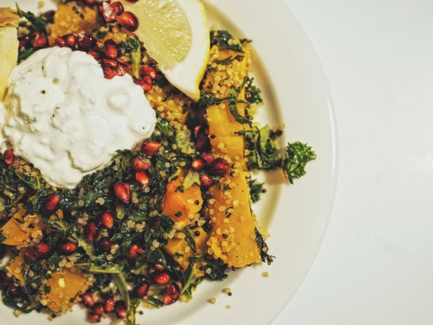 - Kaada joukkoon kvinoa, raasta sitruunankuori, rouhi mustapippuria ja lisää chilihiutaleet.