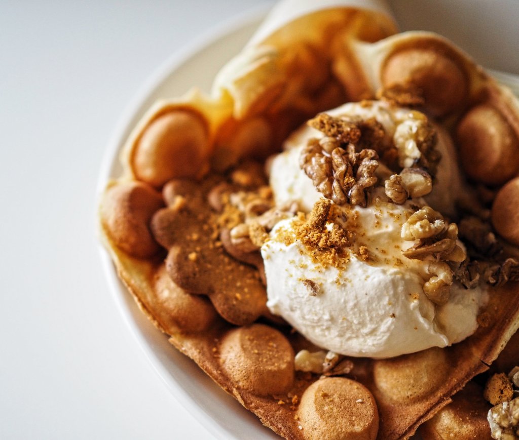 Päältä rapeat ja sisältä kuohkeat kuplavohvelit ovat lähtöisin Hong Kongista ja rantautuneet sieltä maailmalle. Kuplavohvelit ovat täydellistä brunssiruokaa ja todellista luksusta kotikeittiössä. Nämä hauskan näköiset herkut poikkeavat paljonkin tavallisista vohveleista, nimittäin taikinassa on käytettävä muutamia ainesosia mitkä pitävät kuplat ilmavina. Valmistin kaksi erilaista taikinaa brunssia varten, sillä makeat ja suolaiset kuplavohvelit valmistetaan hieman eri tavalla.