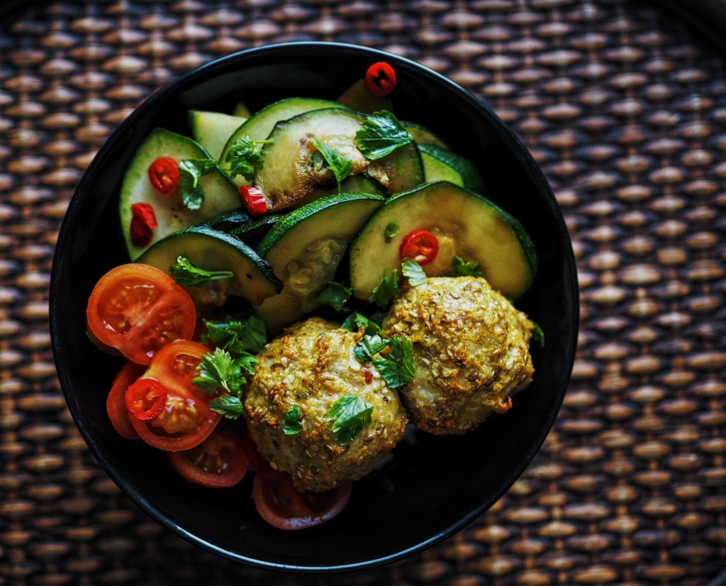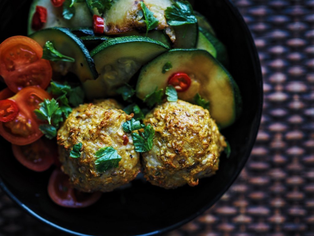 Tällä kertaa valmistin pyörykät ilman kastiketta ja tarjoilin ne riisin ja kasvisten kanssa. Silloin kun mausteet ovat kohdillaan, ei kastikettakaan tarvita. Pyörykät valmistetaan kätevästi uunissa ja niissä maistuu miedosti chili, pippuri, kurkuma, juustokumina ja paprika. Rapeutta ja pähkinäistä paahdetta pyöryköihin tuo seesaminsiemenet. Resepti on maidoton, gluteeniton ja sopii fodmap-ruokavaliota noudattaville.