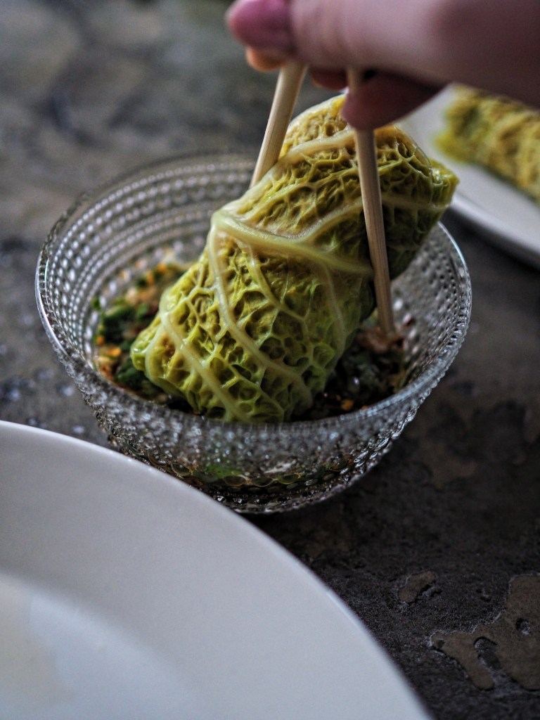 Halusin tehdä kaalikääryleet aasialaiseen tyyliin. Maukas ja mehukas täyte voimakkaan makuisen kastikkeen kanssa, mistä löytyy happoa, suolaa ja raikkautta. Tämä kastike on muuten ihan mun lemppari ja sopii hyvin oikeastaan kaiken kanssa!