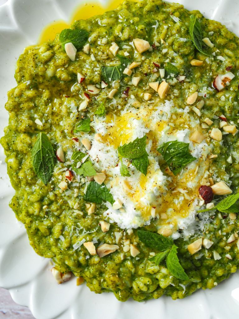 Valmista ruoka tekemällä ensin kasvispyree, maustettu ricotta ja viimeiseksi risotto. Tarjoile hyvän leivän kanssa.